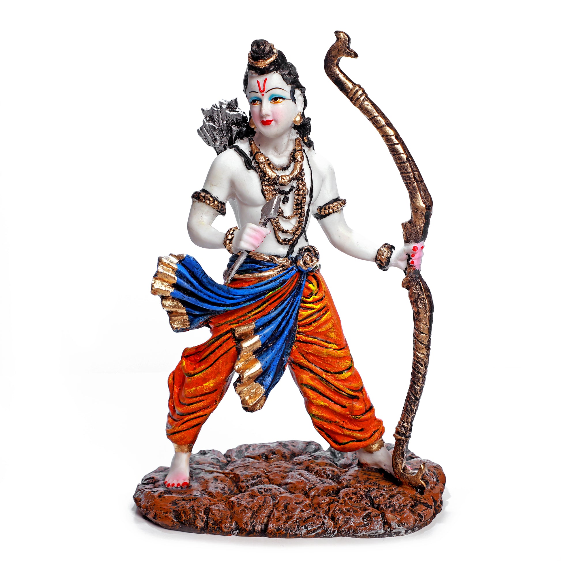 Lord Ram idol made of premium resin, intricately designed with a bow and vibrant attire. Perfect for Pooja Room, Mandir, Home Décor, Office, or as a Gift Showpiece.
