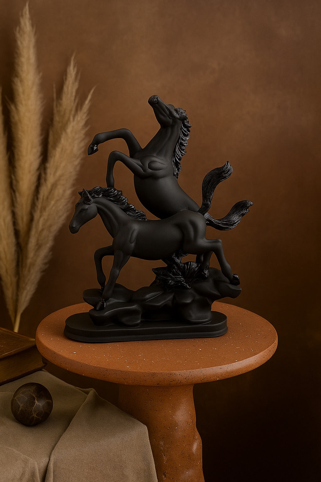Elegant running horse figurine made of premium resin in matte black finish. Perfect for Living Room, Office, Study, or as a Gift Showpiece symbolizing power, success, and speed.