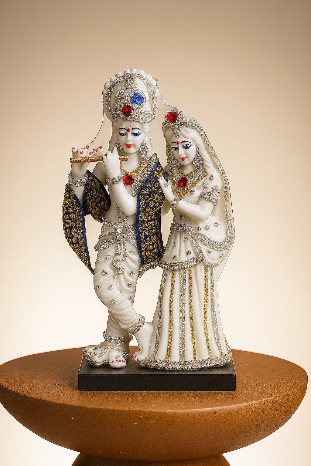 Radha Krishna idol made of premium quality resin in an elegant white finish with intricate detailing. Perfect for Home Décor, Pooja Room, Mandir, Living Room, Office, or as a Gift Showpiece.