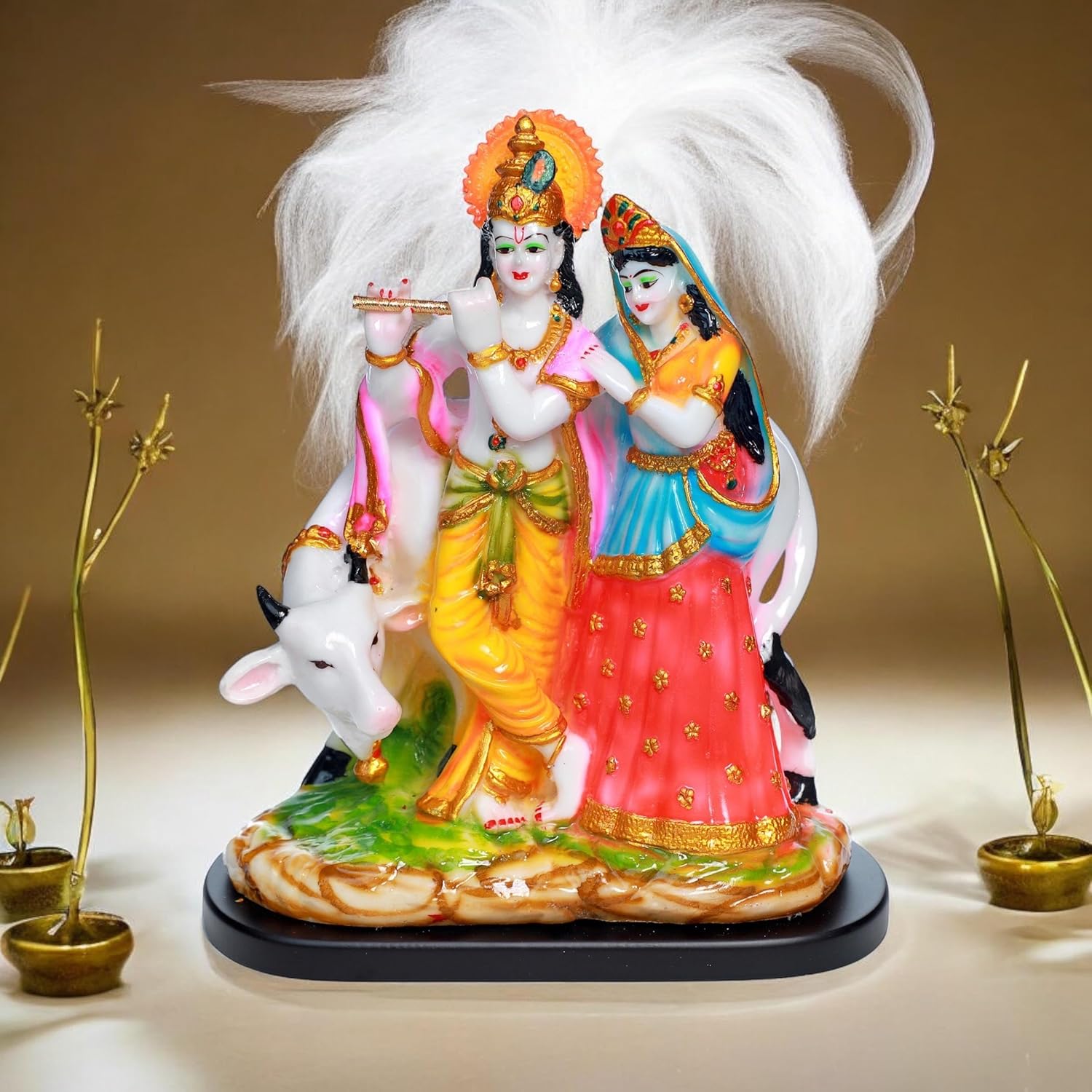 Radha Krishna idol with cow made of premium quality resin for Home, Workplace, Office Desk, or as a Gift. A beautifully detailed and vibrant piece symbolizing love, harmony, and devotion.
